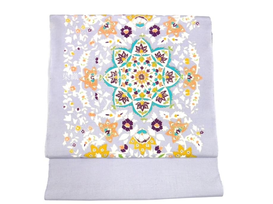 | トップページ>着物GALLERY>九寸名古屋帯GALLERY> 紬地に染め九寸名古屋帯 「 華紋更紗 」 王芸染匠 成謙 | |||||||||||||||||||||