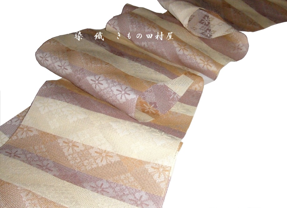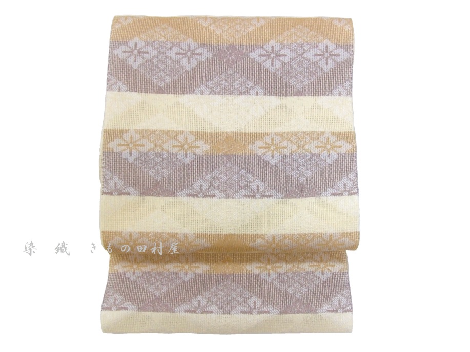 西陣織 夏八寸名古屋帯 「 花菱横段紋 」