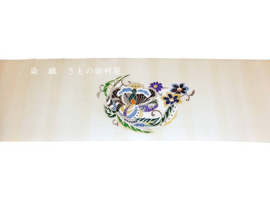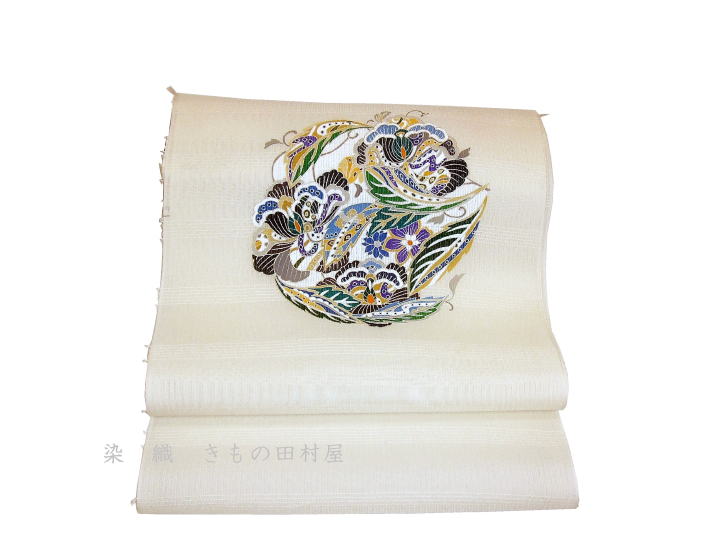 手描き京友禅 染九寸名古屋帯 「 丸華文 」 |