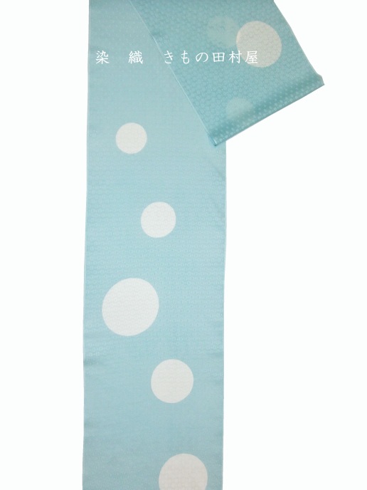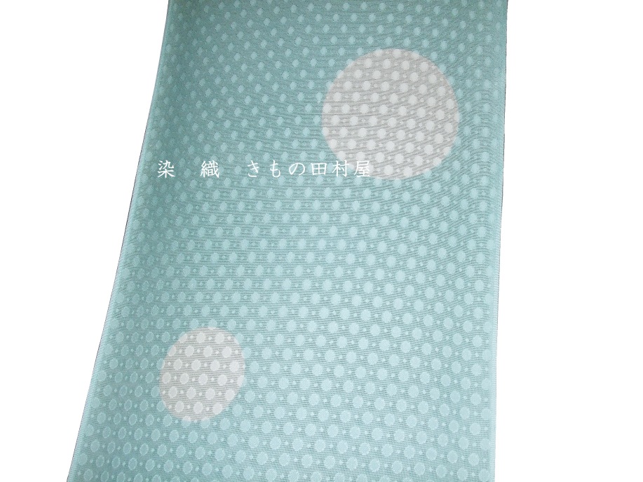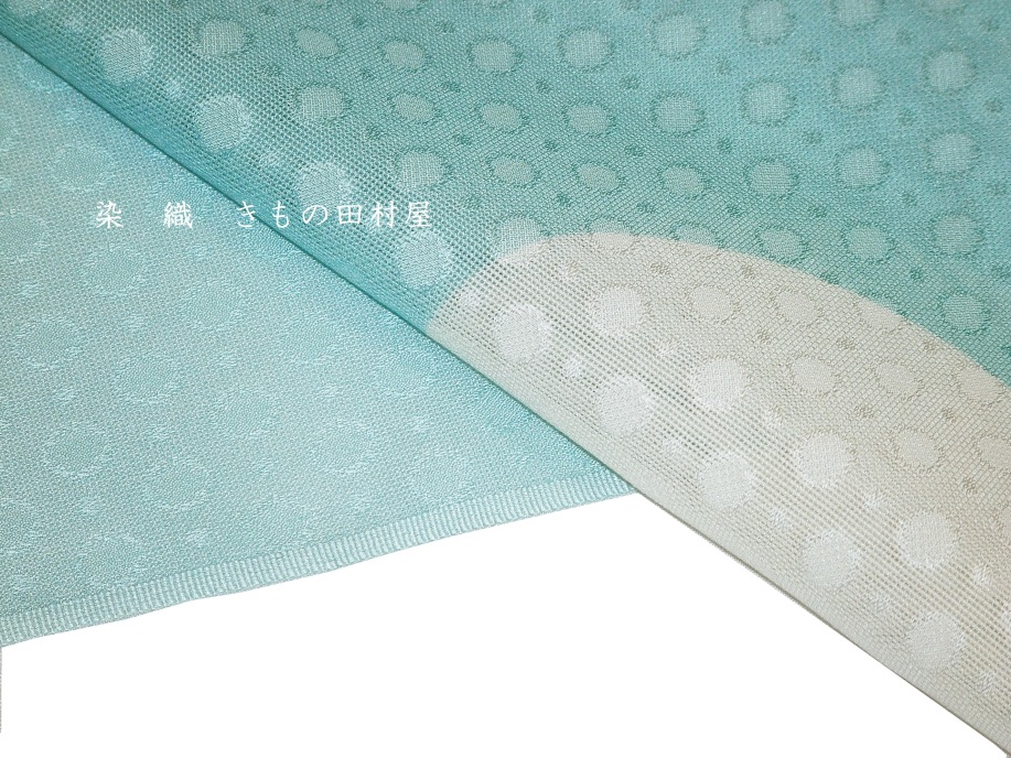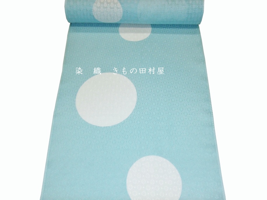 薄物の羽織・塵除けコート地はなかなか面白い品が見つかりません。 困っていた所に、こちらの品と出逢いました。 細かい丸紋の紋紗生地に糊置きして大小の円を染め抜いています。 ちょっと甘めの水色で、白抜きの円がとても綺麗です。 こちらの生地は、無地染だけでも商品となるとは思いますが、 製作しているのが友禅屋さんですので、そこは友禅の技術を生かしてグレードを上げております。 コ―ト専用生地、所謂羽尺ではありませんので3丈4尺以上あり、夏の着物としてもお仕立て可能な反物です。 コート・羽織ものでしたら春先の塵除けコートから真夏まで、 着物としてなら盛夏の7,8月向けに |