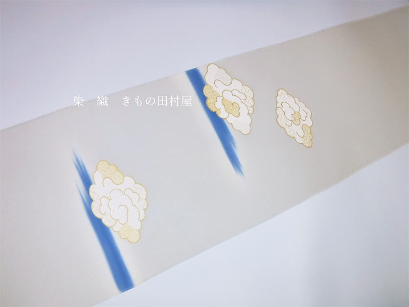 京都の親子で営む小さな問屋さんのお品です。 最近はこのような小さな問屋さんが独自のセンスでもの創りをされていて 有名メーカー、老舗染屋よりも「おっ・・・」と思わせるものを持ってきてくれます。 1点1点自前で考えて発注して、自前で小売店へ持ち込むので 小売店、消費者のニーズにいち早く対応出来ているように感じます。 また職人から弊店までの流通経路も短く、良いお品が比較的手頃にお届けできるメリットもございます。 雲の文様、こちらを入荷する前より色々と見ておりましたが、どうもピンときませんでした。 迷路のようだったり、筋斗雲のようだったり・・・ 簡素でも子供のお絵かきのようになってしまいますし、 入込み過ぎていてもどうも美しくありません。 こちらの「吉祥雲」を見て一目でこれ!と思わせてくれました。 抽象化の度合いと、仕事の良さからくる凛とした雲に出会いました。 素のグレー、白梅鼡の地色に胡粉の雲が浮かび 鮮やかなブルーの霞が清々しさをもたらしてくれています。 金銀は型箔で置いてあり、柄が異なる事によりぼかしのような効果もあります。 季節感、年齢層もなく、帯次第で礼装から遊び着としても対応可能です。 |