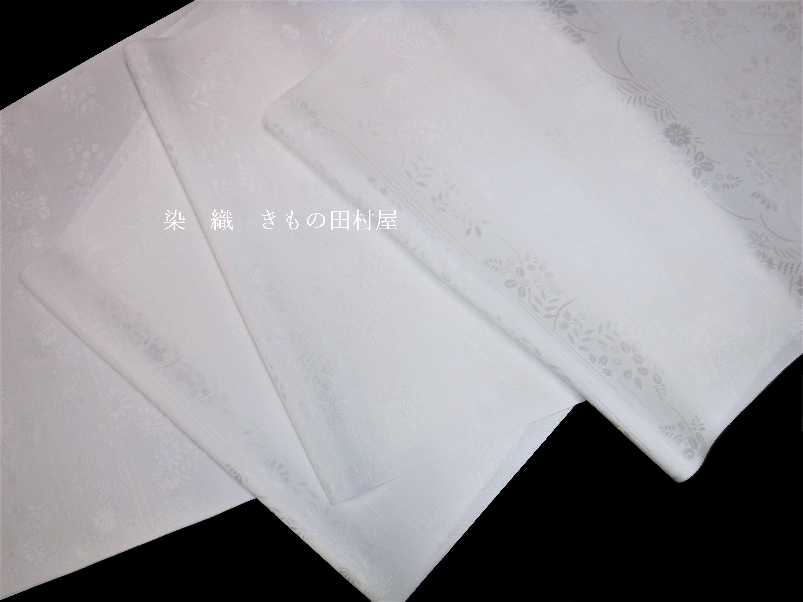 | トップページ>着物GALLERY>長襦袢GALLERY>加藤萬謹製 長襦袢 紋意匠 白地 「横段霞に草花」50−210 | |||||||||||||||||||||||