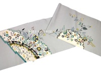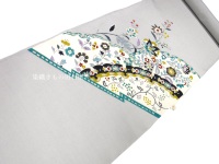 紬地 九寸名古屋帯 「 更紗に雪輪重ね 」 |