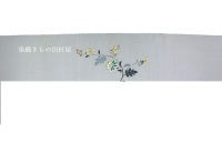岡重の染め帯に似ておりますが、本品は手作業にて糊置きした手描きの京友禅となります。 型による染めは煩雑な柄でも量産するには向いておりますが、染めの質感が均一になってしまうという弱点もございます。 手描き友禅は、基本どんな柄も製作可能ですが、手作業故に効率とコストがかさむという難点があります。 こちらの染屋さんは京都でも珍しい、 悉皆(現場)&問屋という中間的な立ち位置で問屋を省く事によりコストを下げる事が可能です。 手描き = 彩色 で手による糸目も大切ですが、彩色に筆が入るという事で、 色彩のボリューム感というか、立体感が型染めとは異なって参ります。 使用している紬地は真綿系のような毛羽立ちはなく、かと言って生紬ほどシャリ感はなく、 サラリとした手触りの紬地です。 地色は優しい白グレー。 地色、柄色とも弊店が扱うこのシリーズの帯の中で一番大人しいです。 オーセンティックな着物らしいコーディネートが出来るかと思います。 こちらの生地でしたら、透けない単衣の時期前半まで大丈夫かと思います。 |