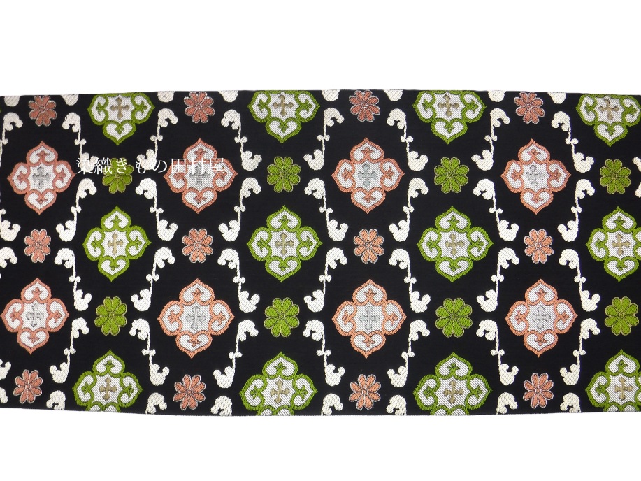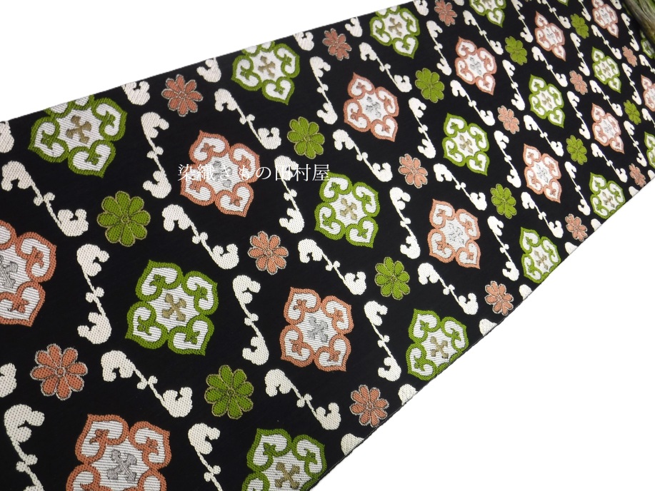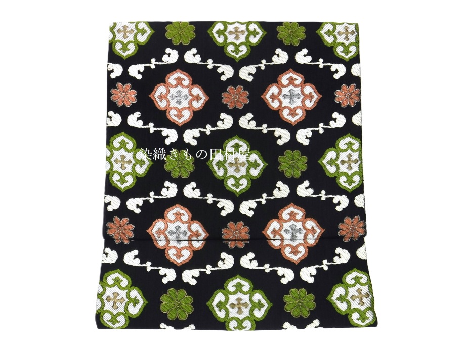 洛風林 九寸名古屋帯 「花十字文」紬地 |