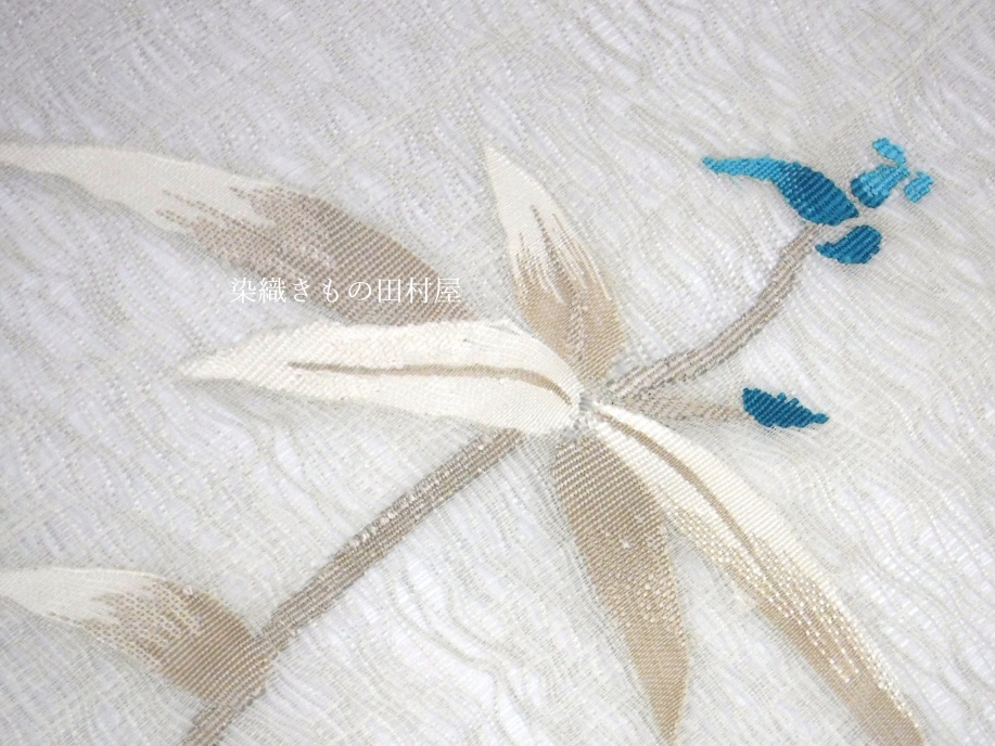 近年の暑さで夏帯のシーズンが長くなって参りました。 決まり事の慣例では7月8月と6月の後半9月の前半 ですが実情は・・・ 6月7月8月9月はもう夏帯、そして5月後半と10月前半はその年の気候に準じて・・・ といった感じでしょうか。 そのような中で、より涼しくと考えますと芯なしでお仕立てできる八寸帯、 芯がない分、織のしっかりとしたお品でないとなりません。 しっかりとした織のお品で、無地・格子・ぼかしを除きますと、 染めのような柔らかな雰囲気や様々な柄が織れるすくいの八寸帯しかないじゃないですか!(笑) 本品、薄グレー(素鼠)地に一本の立ち花の図 葉のグラデーションの織はすくいならでは。花の青も独特な色彩です。 図案はある画家の一部より着想を得ているそです。 夏の西陣帯で地色付きはなかなかお目に掛からない昨今なのですが、 弊店で揃えたまこと織物の夏帯にはどれも地色が付いているという奇跡!(笑) 夏の上布や、江戸小紋、軽めの附下、麻の小千谷縮などにも 夏帯をお探しの方、実用的にはこの一本で巾広くお楽しみ頂けます。 |