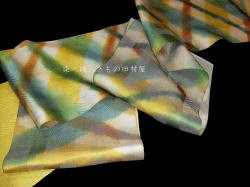 国画会正会員 池田リサ 板締め絣にロートン織九寸帯 ひわ色 ¥ お問い合わせ下さい |