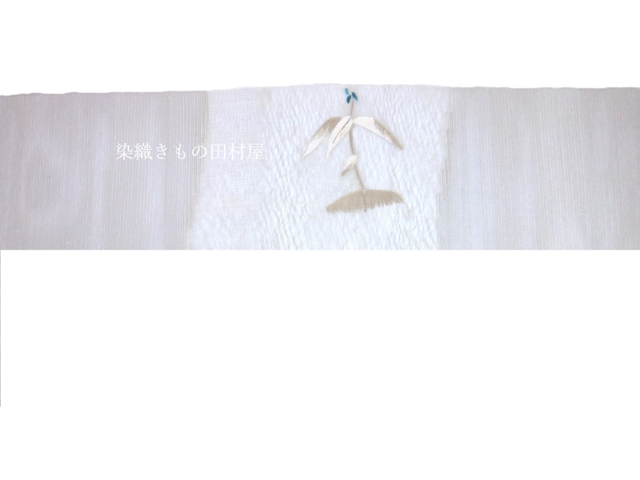 近年の暑さで夏帯のシーズンが長くなって参りました。 決まり事の慣例では7月8月と6月の後半9月の前半 ですが実情は・・・ 6月7月8月9月はもう夏帯、そして5月後半と10月前半はその年の気候に準じて・・・ といった感じでしょうか。 そのような中で、より涼しくと考えますと芯なしでお仕立てできる八寸帯、 芯がない分、織のしっかりとしたお品でないとなりません。 しっかりとした織のお品で、無地・格子・ぼかしを除きますと、 染めのような柔らかな雰囲気や様々な柄が織れるすくいの八寸帯しかないじゃないですか!(笑) 本品、薄グレー(素鼠)地に一本の立ち花の図 葉のグラデーションの織はすくいならでは。花の青も独特な色彩です。 図案はある画家の一部より着想を得ているそです。 夏の西陣帯で地色付きはなかなかお目に掛からない昨今なのですが、 弊店で揃えたまこと織物の夏帯にはどれも地色が付いているという奇跡!(笑) 夏の上布や、江戸小紋、軽めの附下、麻の小千谷縮などにも 夏帯をお探しの方、実用的にはこの一本で巾広くお楽しみ頂けます。 |